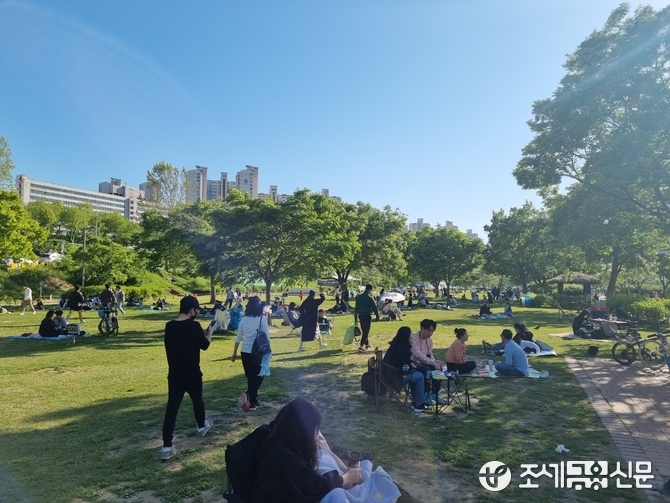 (조세금융신문=방민성 기자) 황사가 물러간 19일 오후 잠실한강공원에 가족과 연인들이 옹기종기 모여 즐거운 시간을 보내고 있다.