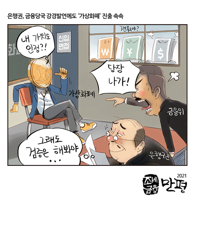 [조세금융만평] 은행권, 금융당국 경고에도 '가상화폐 시장' 속속 진출