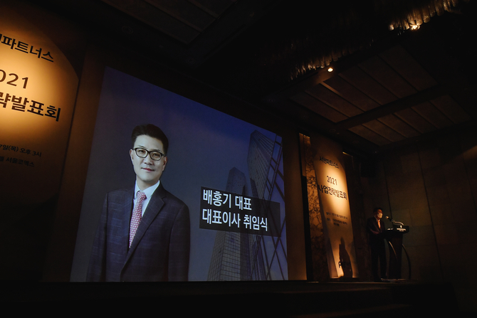 이날 2021년 5월 말로 퇴임의사를 밝힌 강성원 대표이사 회장의 뒤를 이어 배홍기 컨설팅본부장 겸 대표의 신임 대표이사 취임식도 열렸다.