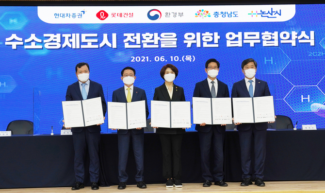 (조세금융신문=이정욱 기자) 롯데건설이 10일 충청남도 논산시청에서 환경부, 충청남도, 논산시, 현대차증권과 수소경제도시 전환을 위한 업무협약을 체결했다고 밝혔다.