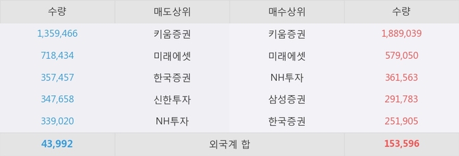 거래원 동향은 미래에셋, NH투자, 삼성증권 등이 매수 상위 목록에 나타나고 있다.