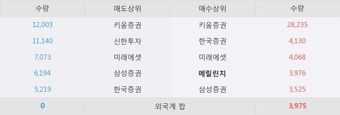거래원 동향은 메릴린치, 미래에셋, 삼성증권 등이 매수 상위 목록에 나타나고 있다.