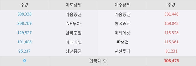 이 시간 JP모건이 매수창구상위에 올라있는 종목은 이 종목 이외에도 보라티알, 동서 등이 있다.