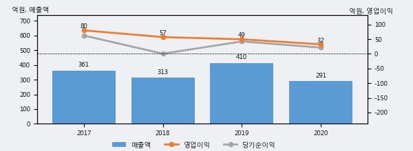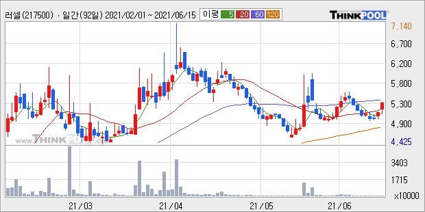 러셀은 2020년 매출액 291억원과 영업이익 32억원을 기록했다. 전년대비 매출은 -29.0%, 영업이익은 -34.6% 각각 하락했다. 이 회사의 매출액 증감률과 영업이익 증감률은 각각 코스닥 하위 1%, 하위 1%에 해당된다.