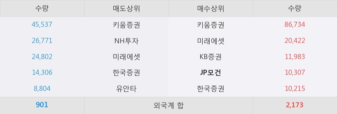 거래원 동향은 JP모건, 미래에셋이 매수 상위 목록에 나타나고 있다.