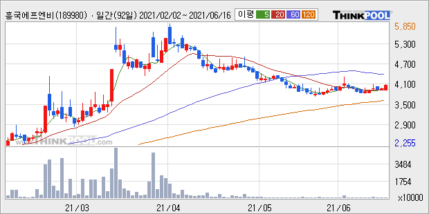 흥국에프엔비의 2020년 매출액은 504억으로 전년대비 -6.2% 하락했고, 영업이익 역시 25억으로 전년대비 -57.3% 하락했다. 이 회사의 매출액 증감률과 영업이익 증감률은 각각 코스닥 하위 37%, 하위 27%에 해당된다.