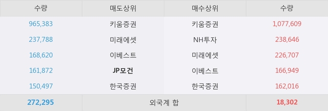 거래원 동향은 NH투자, 미래에셋 등이 매수 상위 목록에 나타나고 있다. 한편, 매도 창구 상위에는 JP모건이 눈에 띄고 있다.