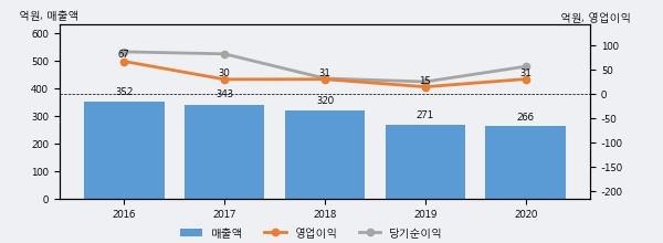 최근 3년간의 실적을 살펴보면, 매출액은 3년 연속 하락하고 있으나 그 하락폭은 줄어들고 있음을 알 수 있다.