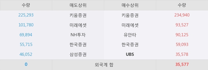 거래원 동향은 UBS, 미래에셋이 매수 상위 목록에 나타나고 있다.