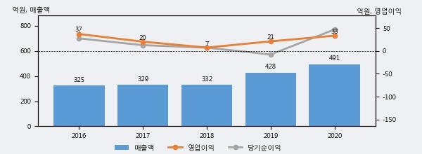 최근 3년간의 실적을 살펴보면 안정적 성장세를 보이고 있다. 최근 3년간 매출로 볼 때 매년 꾸준히 증가하고 있다. 다만 최근에 그 증가폭이 다소 감소하고 있다.