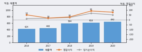 최근 3년간의 실적을 살펴보면 안정적 성장세를 보이고 있다. 최근 3년간 매출로 볼 때 매년 꾸준히 증가하고 있다. 다만 최근에 그 증가폭이 다소 감소하고 있다.