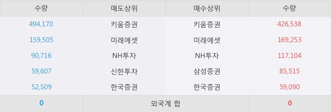 거래원 동향은 미래에셋, NH투자, 삼성증권 등이 매수 상위 목록에 나타나고 있다.