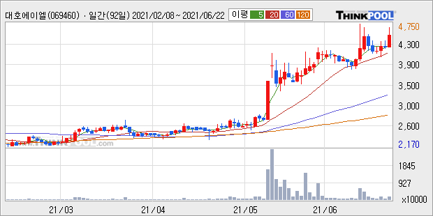 대호에이엘은 2020년 매출액 1214억원과 영업이익 26억원을 기록했다. 전년대비 매출은 3.3% 상승했고, 영업이익은 흑자전환했다. 이 회사의 매출액 증감률과 영업이익 증감률은 각각 코스피 상위 33%, 상위 4%에 해당된다.