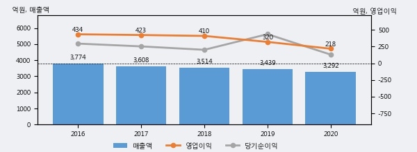 최근 3년간의 실적을 살펴보면, 매출액은 3년 연속 하락하고 있고 그 하락폭이 확대되고 있어서 투자자들은 주의깊게 살펴볼 필요가 있다.