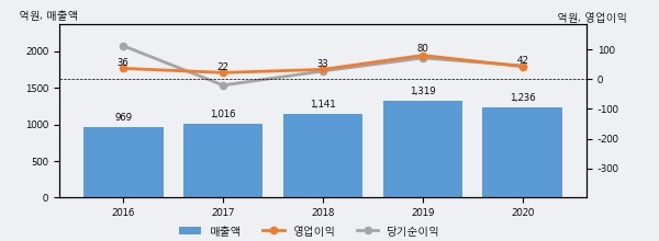 광명전기의 2020년 매출액은 1236억으로 전년대비 -6.3% 하락했고, 영업이익 역시 42억으로 전년대비 -46.9% 하락했다. 이 회사의 매출액 증감률과 영업이익 증감률은 각각 코스피 하위 40%, 하위 26%에 해당된다.