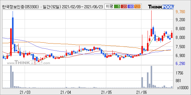 한국정보인증의 2020년 매출액은 전년대비 7.3% 늘어난 457억원이고, 영업이익 또한 전년대비 12.4% 늘어난 104억원을 기록했다. 이 회사의 매출액 증감률과 영업이익 증감률은 각각 코스닥 상위 38%, 상위 44%에 해당된다.