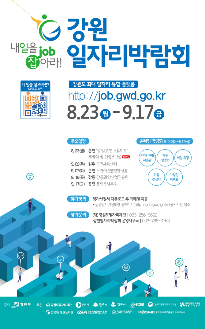 강원도일자리재단은 출범 1주년을 맞아 8월 23일 온라인 개회식을 시작으로 9월 17일까지 4주간 온·오프라인 강원일자리박람회를 진행한다고 4일 밝혔다.
