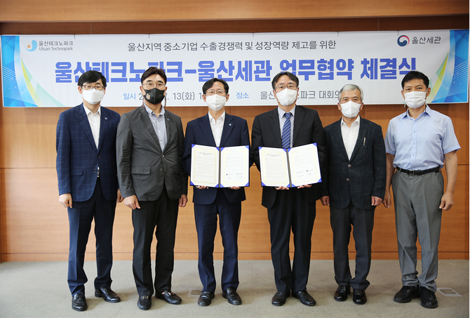 (조세금융신문=홍채린 기자) 울산세관은 지역 기술강소기업의 글로벌 경쟁력 강화 지원을 위하여 13일 오전 울산테크노파크와 업무협약을 13일 체결했다.