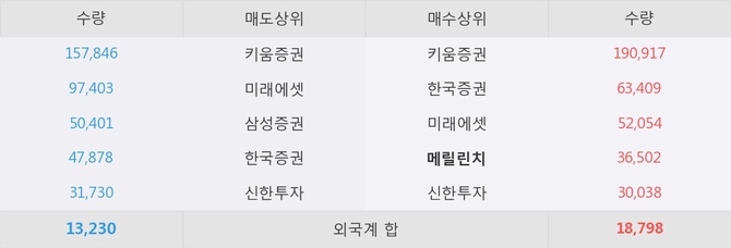 거래원 동향은 메릴린치, 미래에셋이 매수 상위 목록에 나타나고 있다.