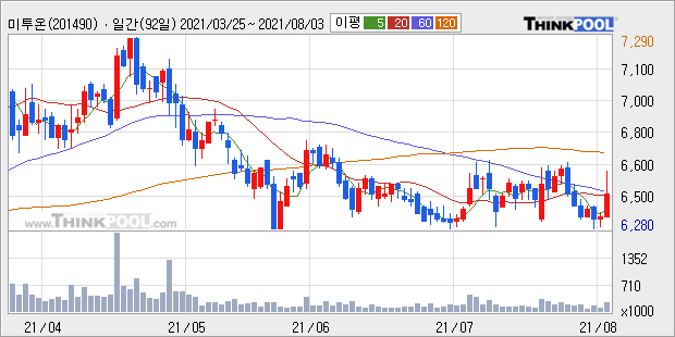 미투온의 2020년 매출액은 1307억으로 전년대비 9.7% 상승했고, 영업이익 또한 446억으로 전년대비 10.2% 상승했다. 이 회사의 매출액 증감률과 영업이익 증감률은 각각 코스닥 상위 35%, 상위 45%에 해당된다.