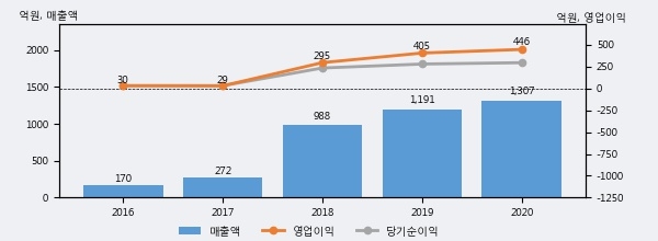 최근 3년간의 실적을 살펴보면 안정적 성장세를 보이고 있다. 최근 3년간 매출로 볼 때 매년 꾸준히 증가하고 있다. 다만 최근에 그 증가폭이 다소 감소하고 있다.