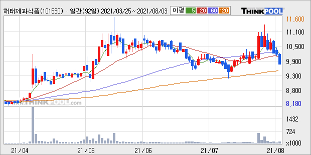 해태제과식품의 2020년 매출액은 전년대비 -18.3% 줄어든 5639억원이고, 영업이익은 전년대비 133.4% 늘어난 339억원을 기록했다. 이 회사의 매출액 증감률과 영업이익 증감률은 각각 코스피 하위 16%, 상위 11%에 해당된다.
