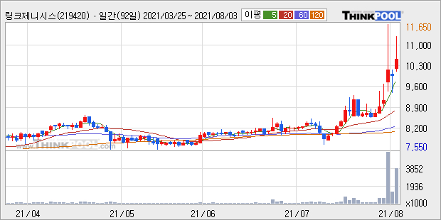 링크제니시스의 2020년 매출액은 전년대비 13.0% 늘어난 129억원이고, 영업이익 또한 전년대비 172.8% 늘어난 28억원을 기록했다. 이 회사의 매출액 증감률과 영업이익 증감률은 각각 코스닥 상위 30%, 상위 11%에 해당된다.