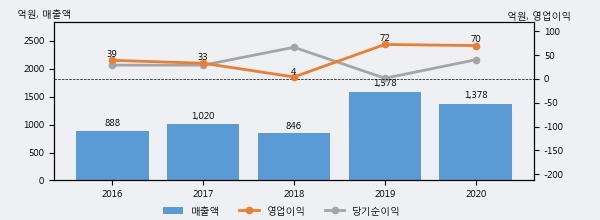 수산중공업의 2020년 매출액은 1378억으로 전년대비 -12.7% 하락했고, 영업이익 역시 70억으로 전년대비 -3.3% 하락했다. 이 회사의 매출액 증감률과 영업이익 증감률은 각각 코스피 하위 26%, 하위 45%에 해당된다.