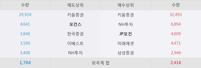 거래원 동향은 JP모건, NH투자, 미래에셋 등이 매수 상위 목록에 나타나고 있다. 한편, 매도 창구 상위에는 모건스가 눈에 띄고 있다.