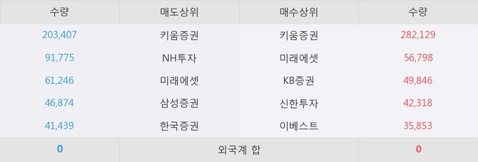 이 시각 주요 거래원은 미래에셋, 키움증권, KB증권 등이 매수 상위 창구에 자리하고 있다.