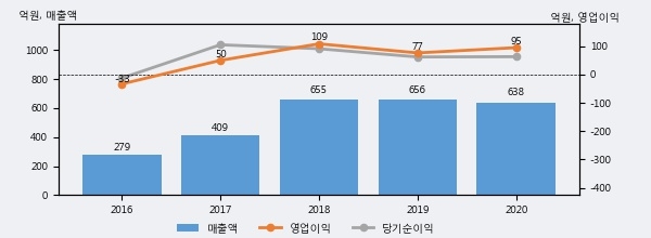 코세스의 2020년 매출액은 638억으로 전년대비 -2.7% 하락했고, 영업이익은 95억으로 전년대비 24.4% 상승했다. 이 회사의 매출액 증감률과 영업이익 증감률은 각각 코스닥 하위 44%, 상위 38%에 해당된다.