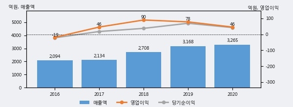 최근 3년간의 실적을 살펴보면 안정적 성장세를 보이고 있다. 최근 3년간 매출로 볼 때 매년 꾸준히 증가하고 있다. 다만 최근에 그 증가폭이 다소 감소하고 있다.