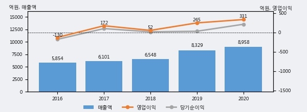 최근 3년간의 실적을 살펴보면 안정적 성장세를 보이고 있다. 최근 3년간 매출로 볼 때 매년 꾸준히 증가하고 있다. 다만 최근에 그 증가폭이 다소 감소하고 있다.