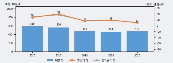 빛샘전자의 2020년 매출액은 전년대비 2.2% 늘어난 475억원이고, 영업이익은 전년대비 -42.0% 줄어든 11억원을 기록했다. 이 회사의 매출액 증감률과 영업이익 증감률은 각각 코스닥 상위 46%, 하위 32%에 해당된다.
