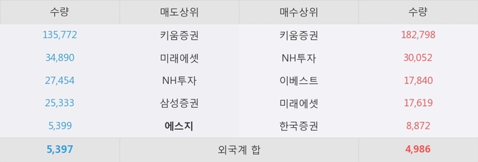거래원 동향은 NH투자, 미래에셋 등이 매수 상위 목록에 나타나고 있다. 한편, 매도 창구 상위에는 에스지가 눈에 띄고 있다.