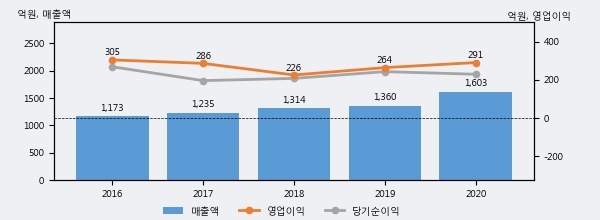 최근 3년간의 실적을 살펴보면 안정적 성장세를 보이고 있다. 최근 3년간 매출로 볼 때 매년 꾸준히 증가하고 있고 그 증가폭도 확대되고 있다.