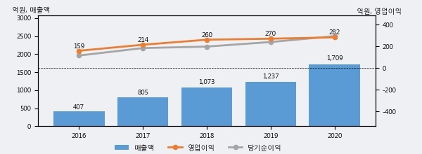 최근 3년간의 실적을 살펴보면 안정적 성장세를 보이고 있다. 최근 3년간 매출로 볼 때 매년 꾸준히 증가하고 있고 그 증가폭도 확대되고 있다.