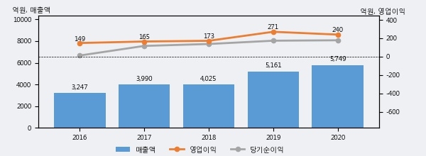 최근 3년간의 실적을 살펴보면 안정적 성장세를 보이고 있다. 최근 3년간 매출로 볼 때 매년 꾸준히 증가하고 있다. 다만 최근에 그 증가폭이 다소 감소하고 있다.