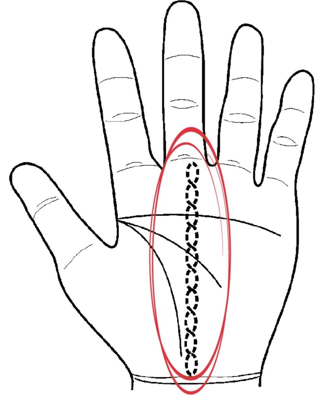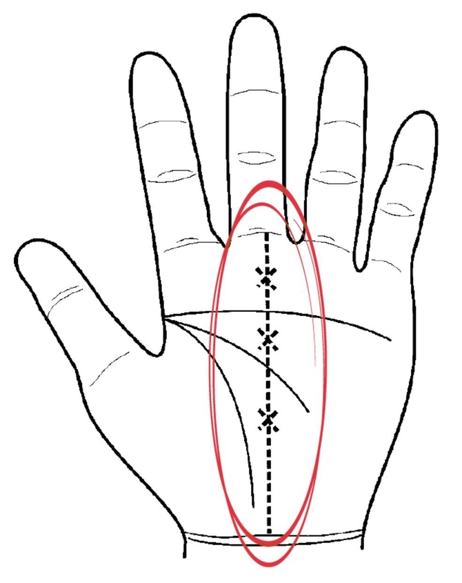 하지만, 운명선 자체만큼은 흐트러짐 없이 꿋꿋이 중지를 향하여 뻗으면, 여러 재난에도 불구하고 성공하는 상이다.