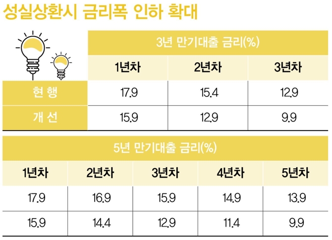 최고금리 인하에 따라 최저신용자 대상 정책서민금융상품인 햇살론17의 금리도 2%p 낮아진다.