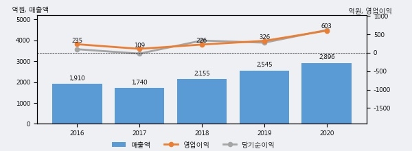 최근 3년간의 실적을 살펴보면 안정적 성장세를 보이고 있다. 최근 3년간 매출로 볼 때 매년 증가하고 있다. 다만 최근에 그 증가폭이 다소 감소하고 있다.