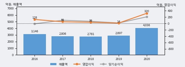 최근 실적을 살펴보면 2020년 매출액이 최근 5년 중 가장 높은 실적을 기록했음을 알 수 있다. 이전 최고 실적이었던 2016년 보다도 28.3%(890억 5천만원) 늘어난 것으로 나타났다.