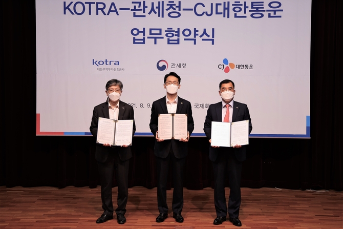 (조세금융신문=홍채린 기자) 관세청과 코트라, CJ대한통운은 9일 서울시 서초구 소재 코트라 서울 본사에서 '중소기업의 전자상거래 수출지원을 위한 업무협약(MOU)'을 체결했다.