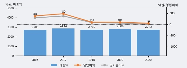 HB테크놀러지의 2020년 매출액은 2742억으로 전년대비 -2.3% 하락했고, 영업이익 역시 49억으로 전년대비 -51.4% 하락했다. 이 회사의 매출액 증감률과 영업이익 증감률은 각각 코스닥 하위 44%, 하위 29%에 해당된다.