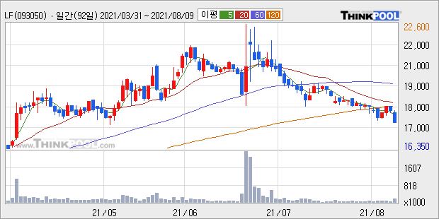 LF은 2020년 매출액 1조 6105억원과 영업이익 771억원을 기록했다. 전년대비 매출은 -13.0%, 영업이익은 -12.0% 각각 하락했다. 이 회사의 매출액 증감률과 영업이익 증감률은 각각 코스피 하위 25%, 하위 39%에 해당된다.