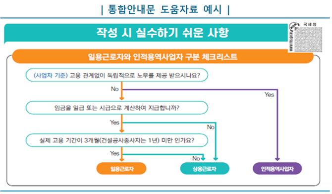 국세청은 원천징수의무자가 쉽게 전자신고할 수 있도록 ‘제출방법 따라하기 동영상’과 안내문에 신고 시 실수하기 쉬운 사항을 도표로 제공한다.