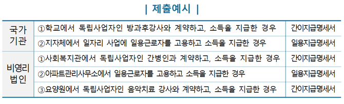 청소 등 용역 사업자에게 소득을 지급했다면, 국가기관이나 대학 등 비영리법인이라도 소득자료를 제출해야 한다.