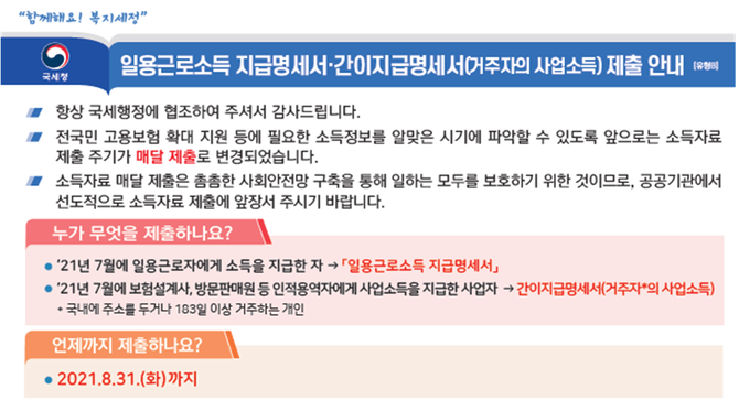 전국민 고용보험 확대에 따라 소득정보 파악을 위해 소득자료 제출주기가 월별 제출로 단축됐다.