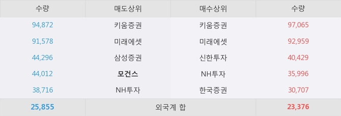 거래원 동향은 미래에셋, NH투자 등이 매수 상위 목록에 나타나고 있다. 한편, 매도 창구 상위에는 모건스가 눈에 띄고 있다.