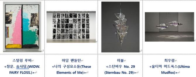 여러 작품 중에서는 스털링 루비의 '창문. 솜사탕.(WIDW. FAIRY FLOSS.)', 아담 펜들턴 '나의 구성요소들(These Elements of Me)', 이불 '스턴바우 No. 29 (Sternbau No. 29)', 최우람 '울티마 머드폭스(Ultima Mudfox)'가 특히 많은 관람객의 호응을 얻었다.